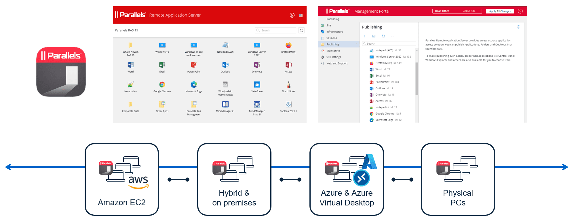 When you choose Parallels RAS, you get freedom of choice, ease of management, an optimized user experience, no vendor lock-in, and optimized costs. The ability to select the most suitable provider for your needs, whether it is a cloud provider or on-premises, or a combination), brings you the best of both worlds by combining the power and flexibility of on-premises and multiple clouds. This is what makes Parallels RAS a great solution!