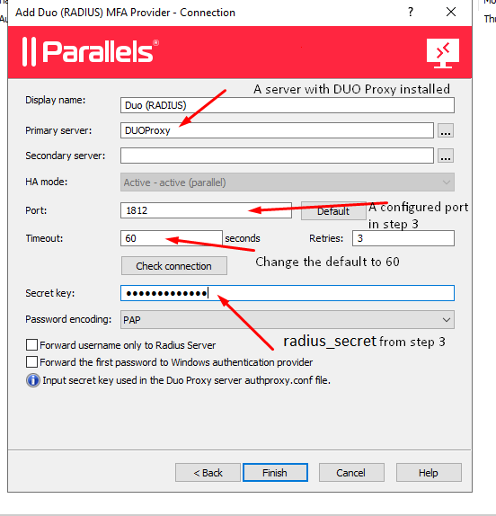 Configuring Parallels RAS to work with DUO (RADIUS) MFA Provider