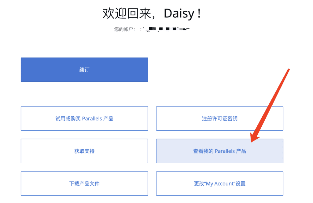 3、登录后,可看以下主页面,已经激活了Parallels Desktop,单击“查看我的 Parallels 产品”。