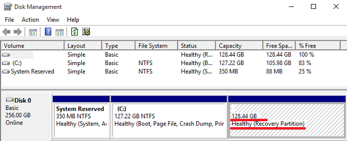 list partition select partition <#> delete partition overridewhere <#> is the number of the Recovery partition: