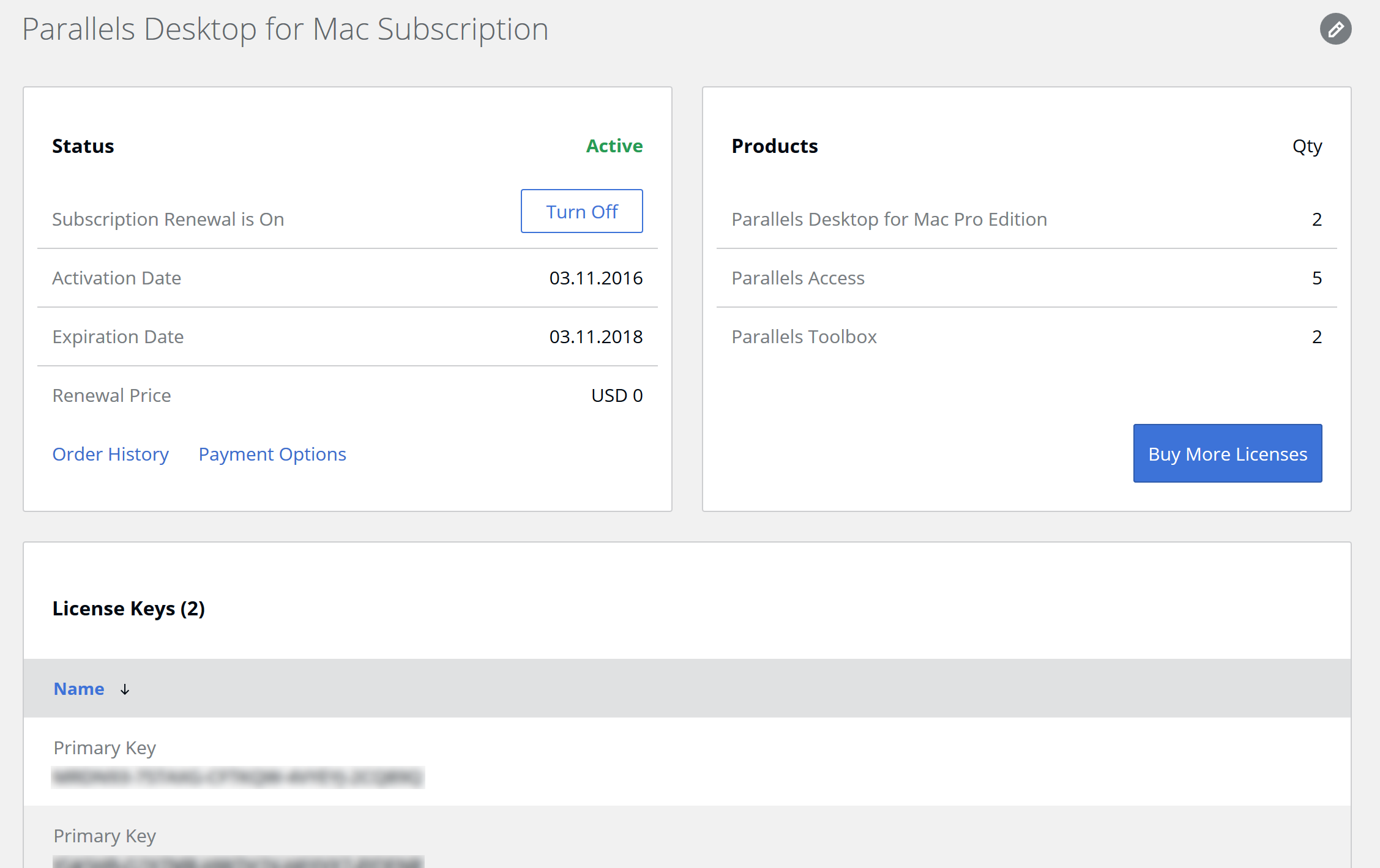 You can view and manage all your subscriptions in your Parallels account at https://my.parallels.com/.