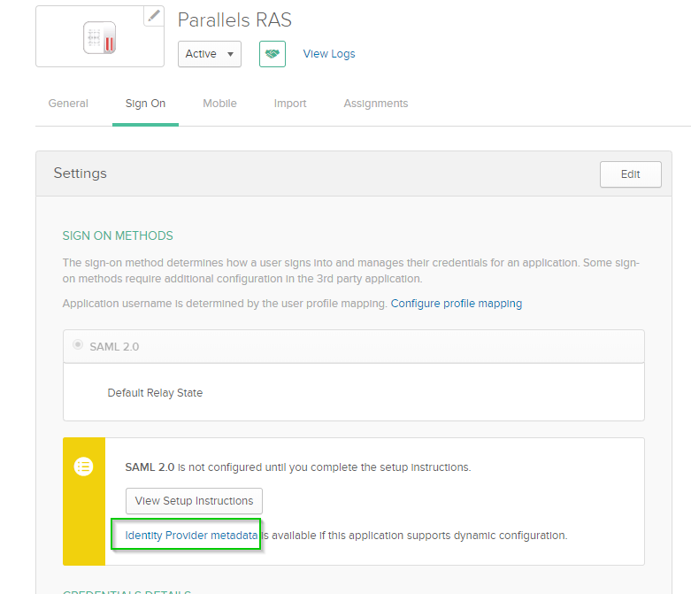 1. In RAS Console > Connection > SAML tab > open IdP Okta and switch to IdP tab.