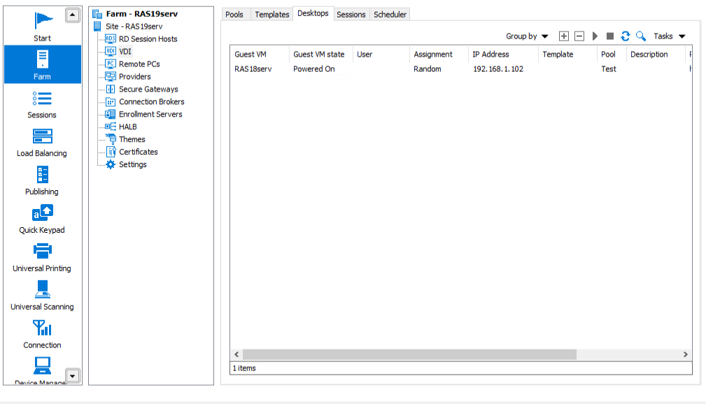 7. Now, you have a Pool a Guest VM in it, so it's possible to publish a resource using VDI.