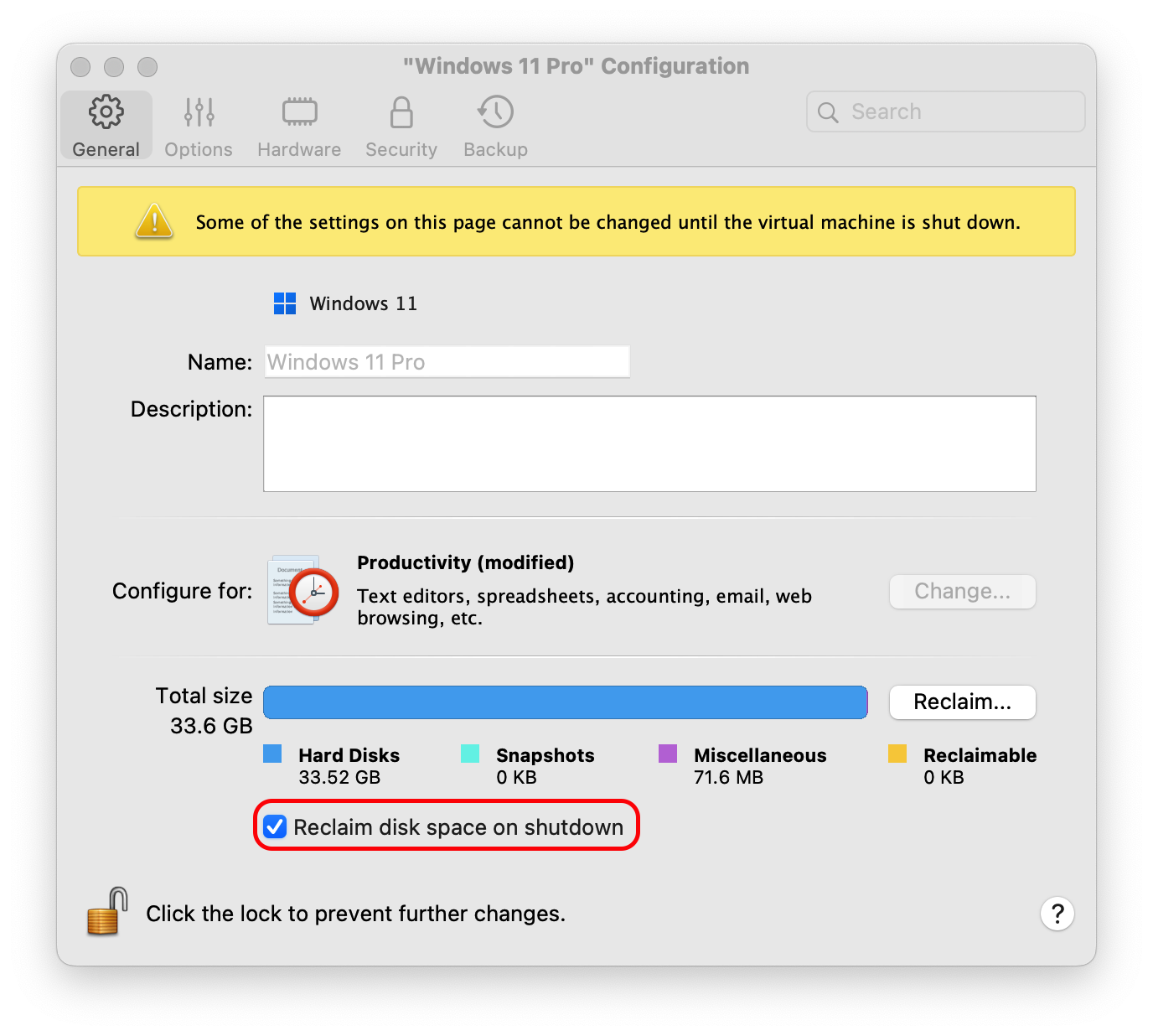 6. In Parallels Desktop you can automate reclaiming disk space back to Mac each time you shut down the virtual machine.