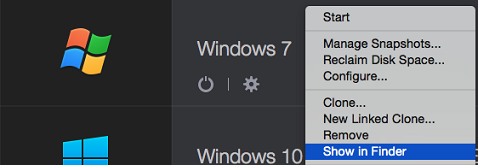 1. Start Parallels Desktop. On Mac bar click on Parallels Desktop    menu > Control Center > right click on your Windows virtual machine > choose Show in Finder.