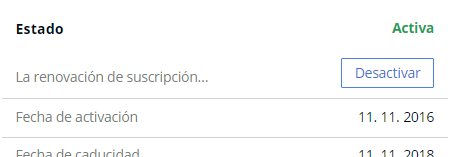 Puede gestionar la opción de renovación automática mediante el botón Desactivar o Activar en el cuadro Estado.