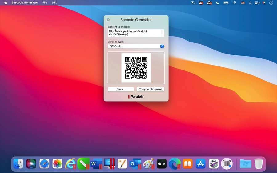 macOS och WindowsAnge text eller en webbadress och välj det önskade streckkodsformatet, så kommer verktyget att generera en bild på en streckkod eller QR-kod. Kopiera streckkoden till urklipp eller spara den som en bildfil.